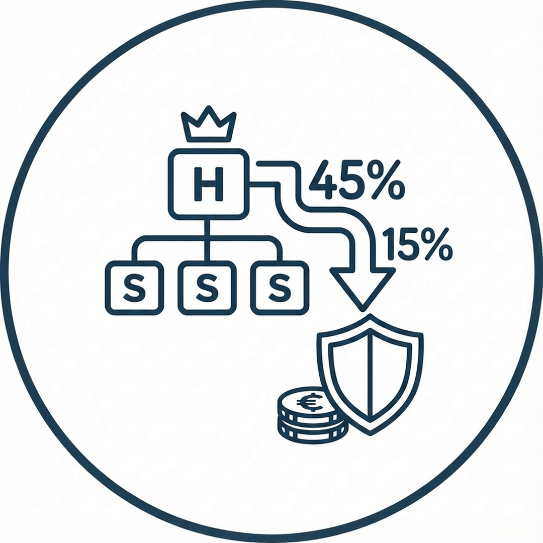 Du erkennst, wie du aus dem Spitzensteuersatz (45%) in eine 15%-Besteuerung kommst – und damit €30.000+ pro Jahr sparst